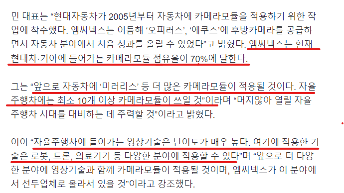 민동욱 엠씨넥스 대표 (제공=엠씨넥스) [이데일리 강경래 기자] “자율주행차에 들어가는 카메라모듈 시장을 선점할 것입니다.” 1일 서울 가산디지털단지 엠씨넥스(097520) 본사에서 만난 이 회